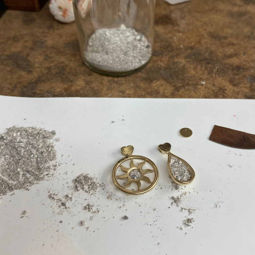 Gedenksieraden en assieraden bieden de mogelijkheid tot het plaatsen van as, vingerafdrukken of haar in het sieraad.